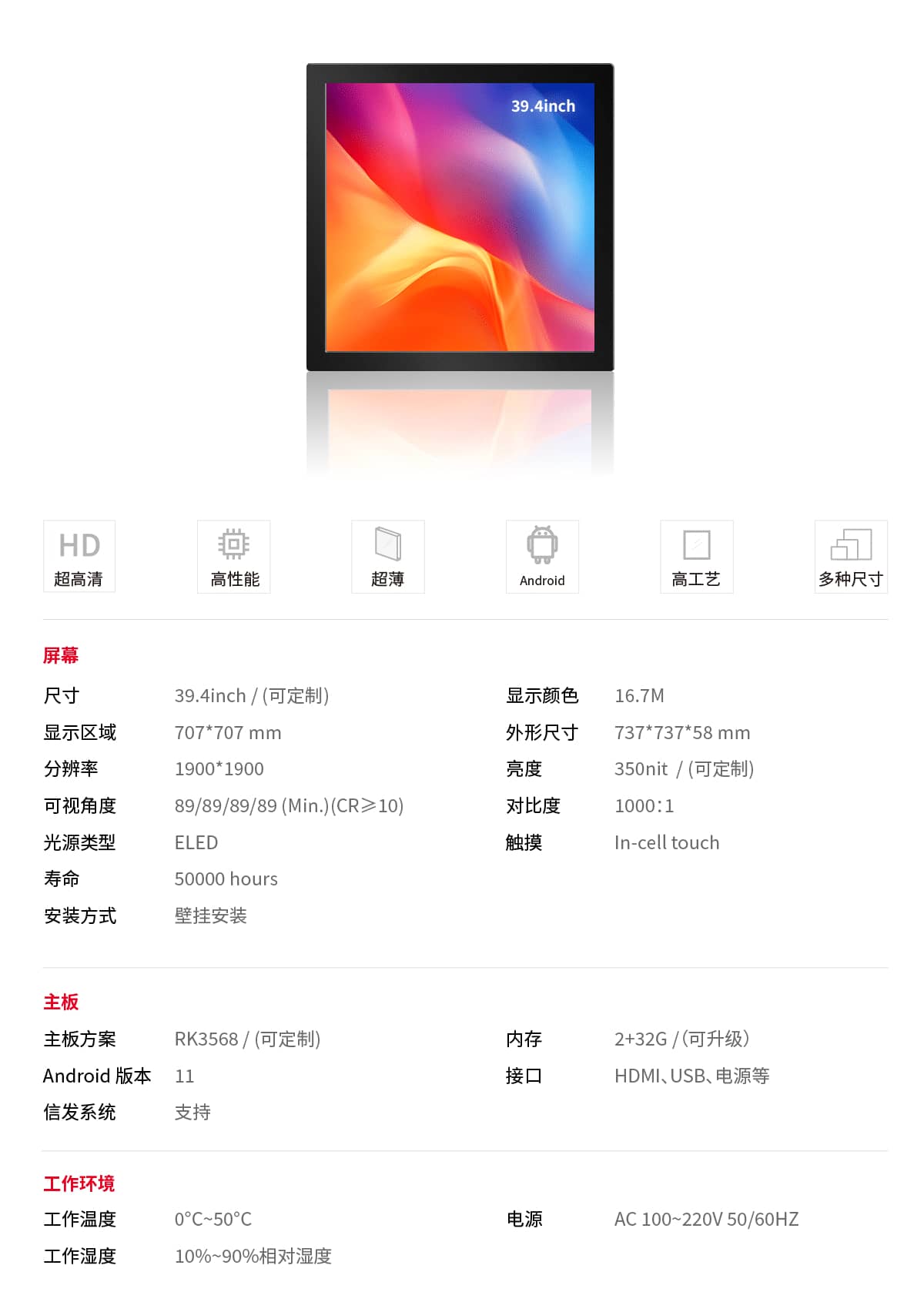方形屏区别于传统16比9的液晶屏,为1比1正方形显示,能起到更好的宣传展示作用