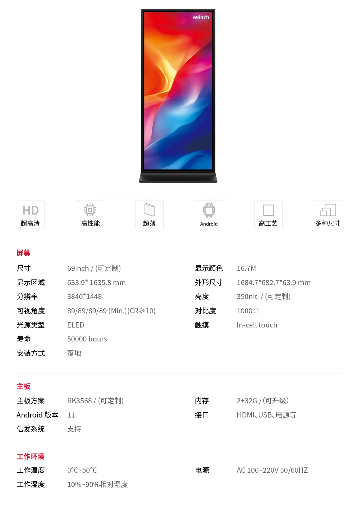 超高清显示:采用最先进的显示技术,提供细腻的画面和生动的色彩,让广告内容栩栩如生。